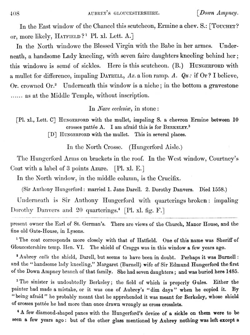 Page 2 History of Down Ampney, the church and monuments, Hungerford, Berkley and Danvers families.