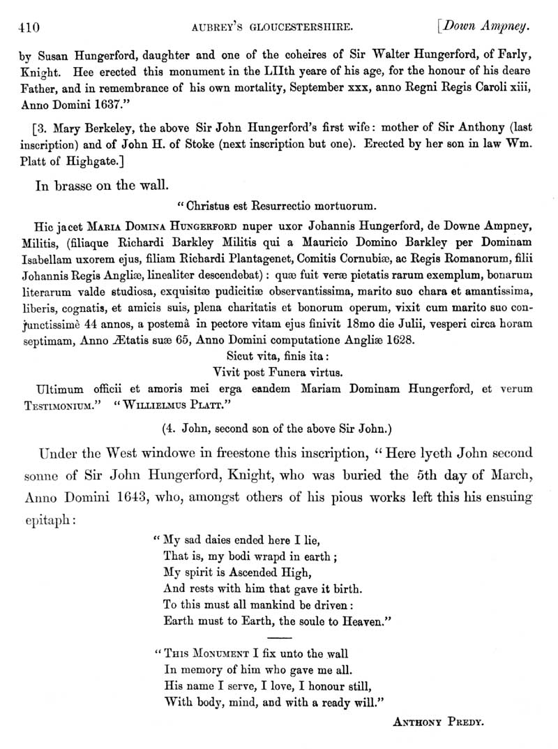 Page 4 History of Down Ampney, the church and monuments, Hungerford, and Berkley families.
