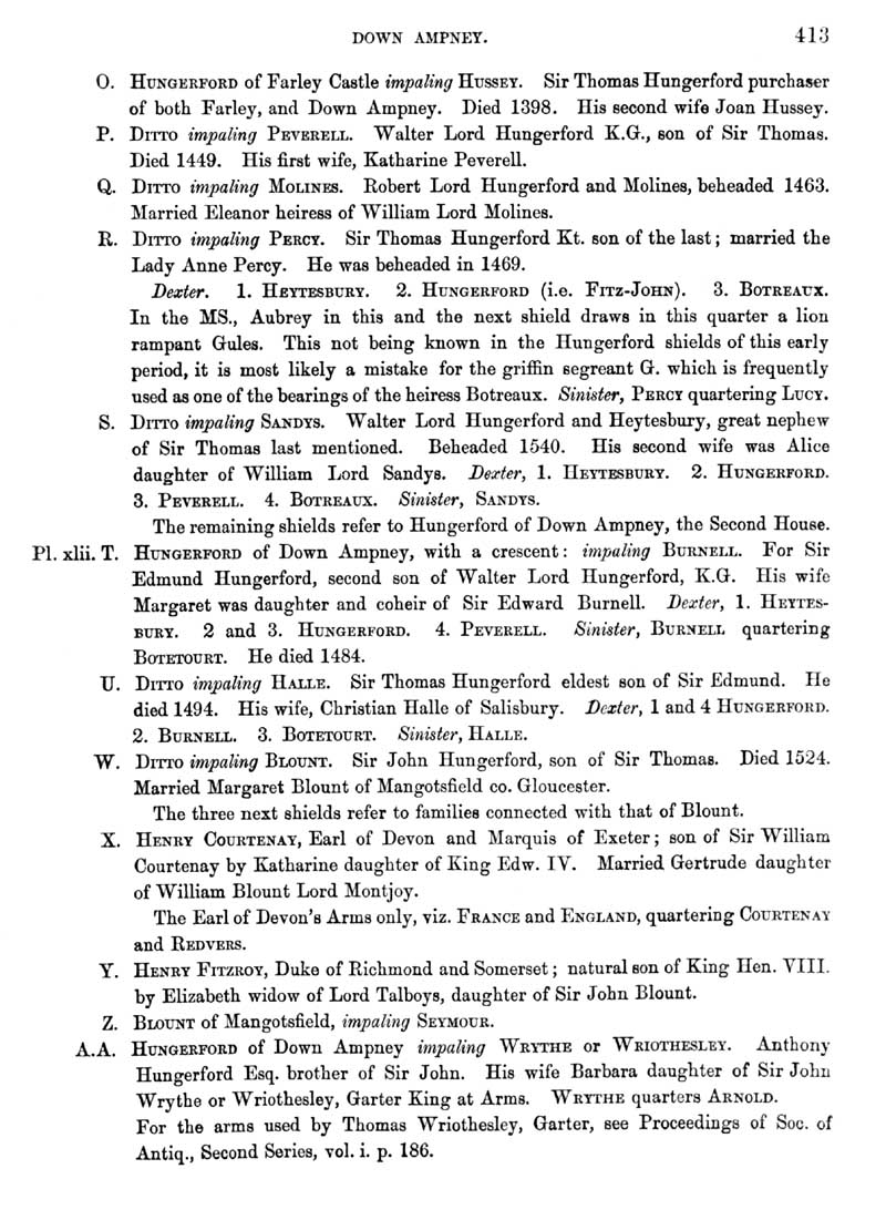 Page 7 History of Down Ampney, description of arms of the Hungerford family of Farleigh Castle and Down Ampney.