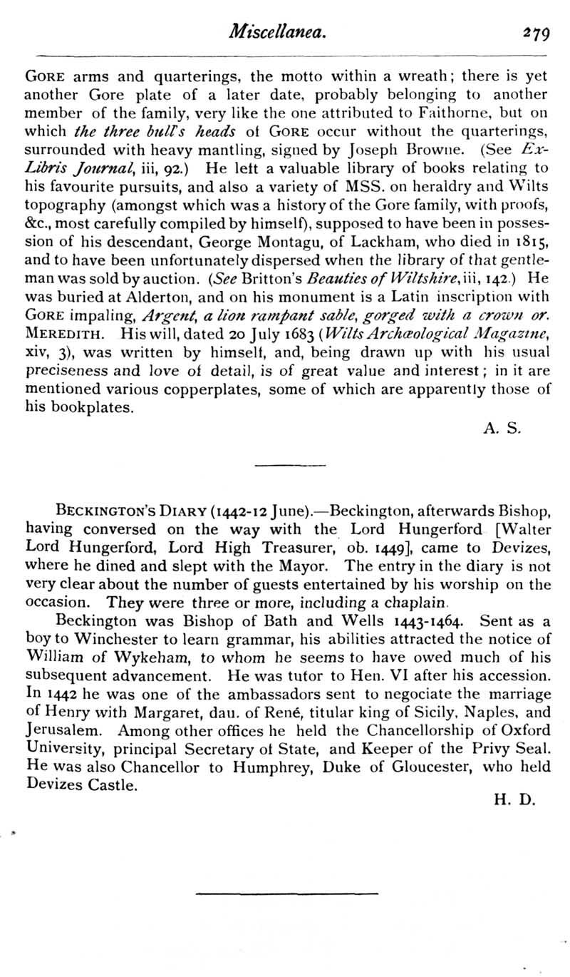 Chapter 7 Place House Melksham; Records of Wiltshire Parishes; Quakerism in Wiltshire; Feet of Fines for Wiltshire; Purton; Melksham 'City'; Arms in Westwood Church; Adam Goldney to george Fox; Wiltshire Briefs; Miscellanea; Queries; Replies; Notes on Books.
