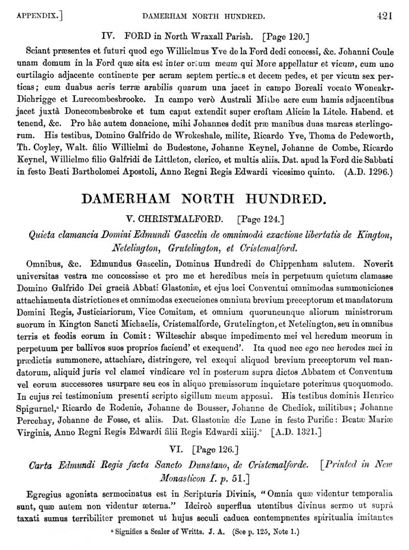 Page 3 Ford (North Wraxall), 1296; Christian Malford, 1321 and 940.