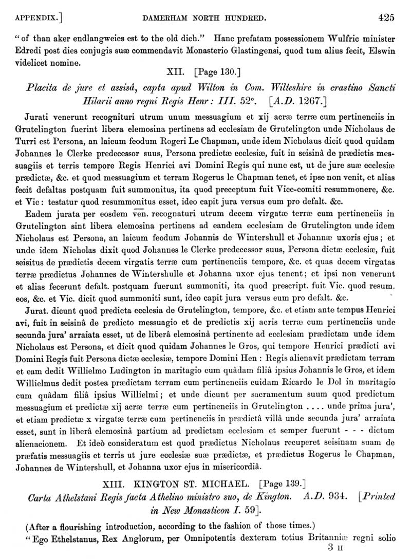 Page 7 Grittleton, 940 and 1267; Kington St. Michael, 934.