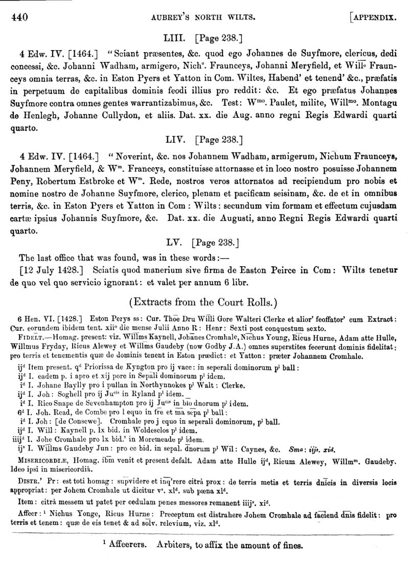 Page 22 Easton Piercy (Kington St. Michael), 1464 and 1424.