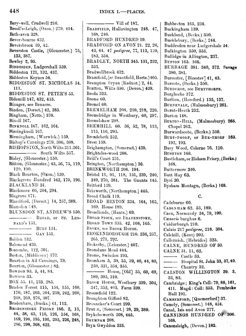 Page 2 Index, Berywell, Crudwell to Canonsleigh (Devon).