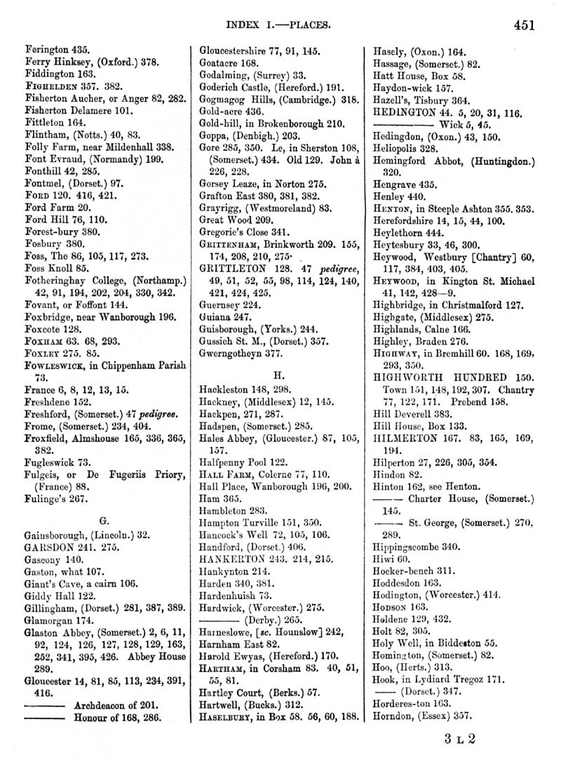 Page 5 Index, Ferington to Horndon (Essex).