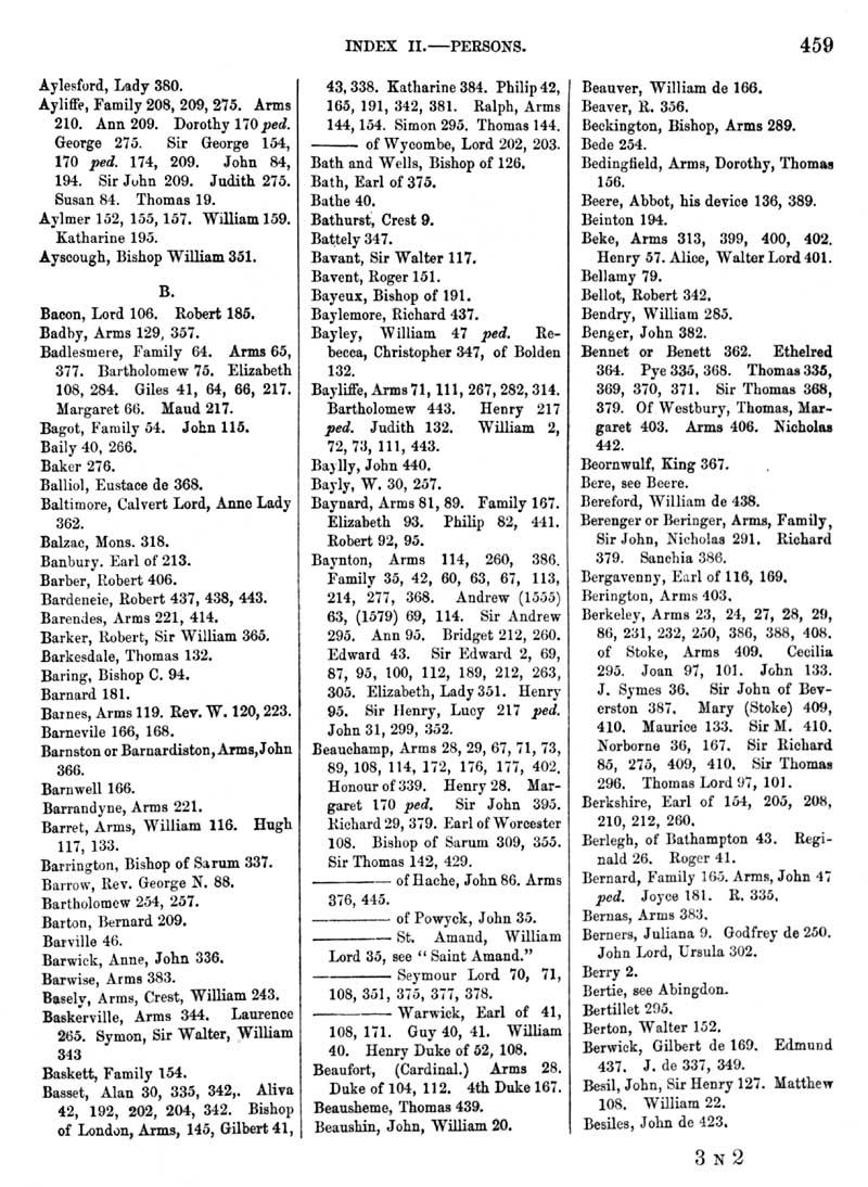 Page 2 Index, Aylesford to Besiles.