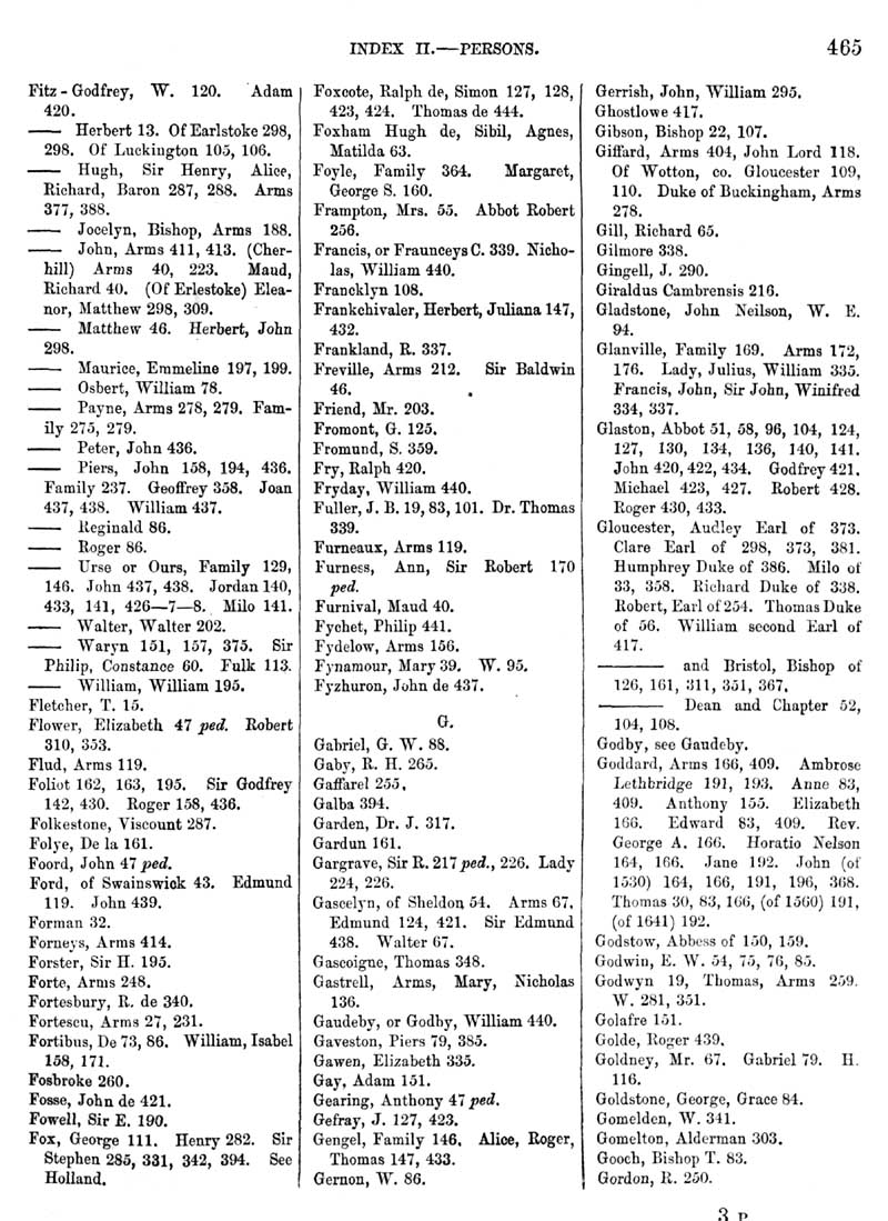Page 8 Index, Fitz-Godfrey to Gordon.