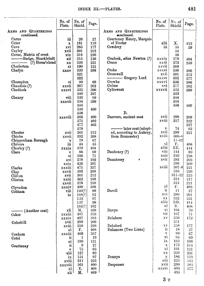 Page 3 Index ( Family Arms and Quarters), Carne to Despenser.
