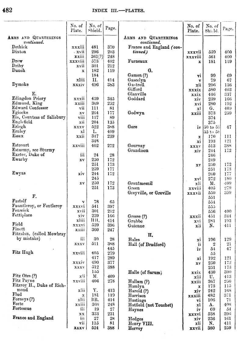 Page 4 Index ( Family Arms and Quarters), Dethick to Hervey.