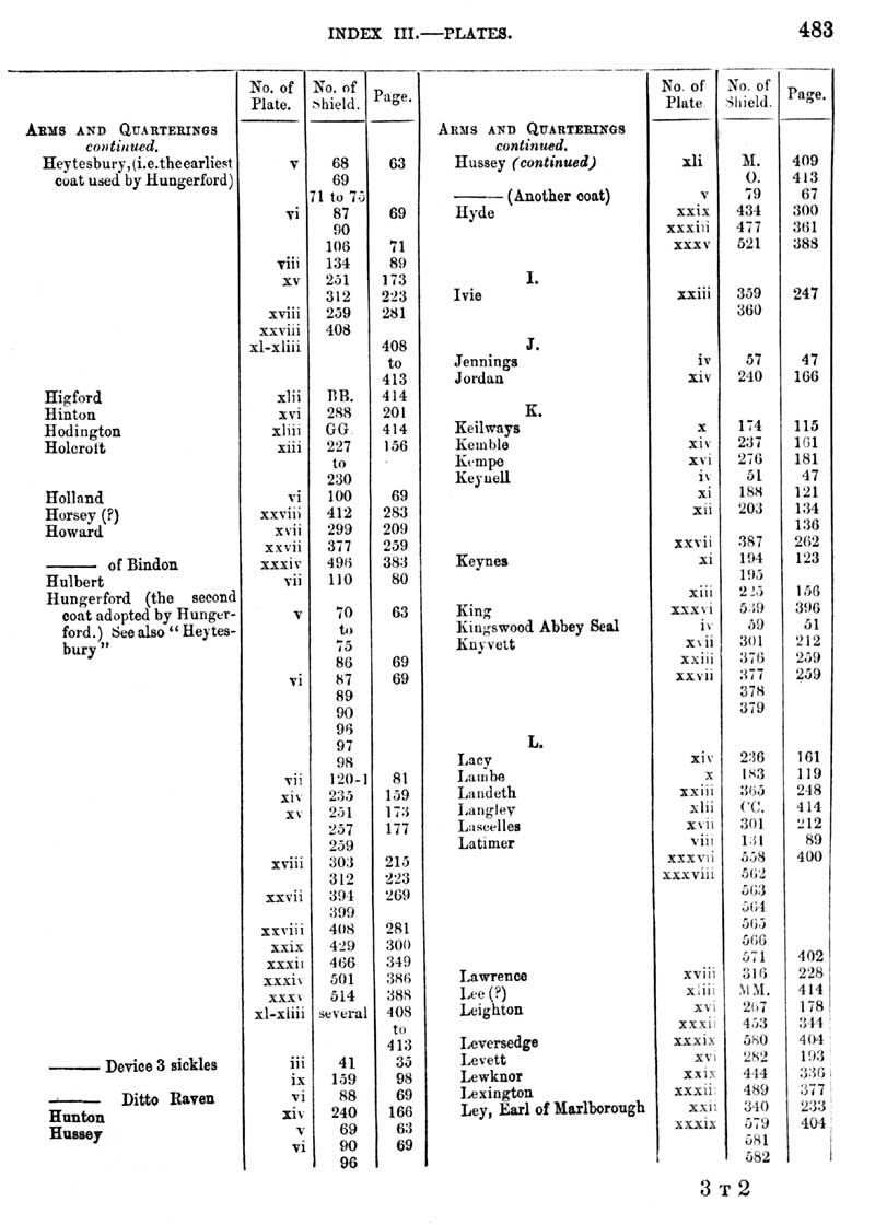 Page 5 Index ( Family Arms and Quarters), Heytesbury to Ley.