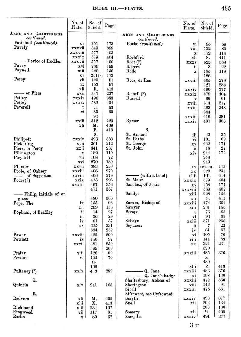 Page 7 Index ( Family Arms and Quarters), Patishull to Sore.