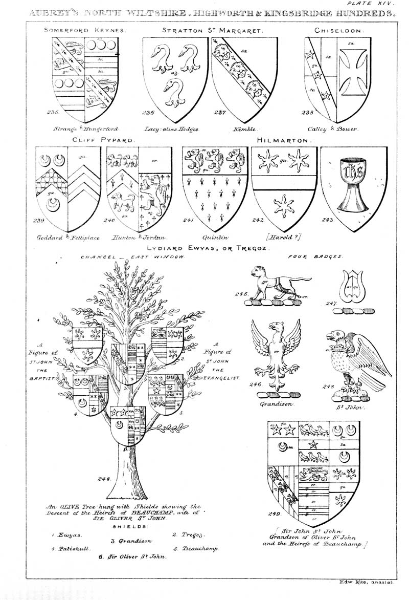 Page 14 Coats of Arms in Somerford Keynes, Stratton St. Margaret, Chiseldon, Clyffe Pypard, Hilmarton and Lydiard Tregoze churches.