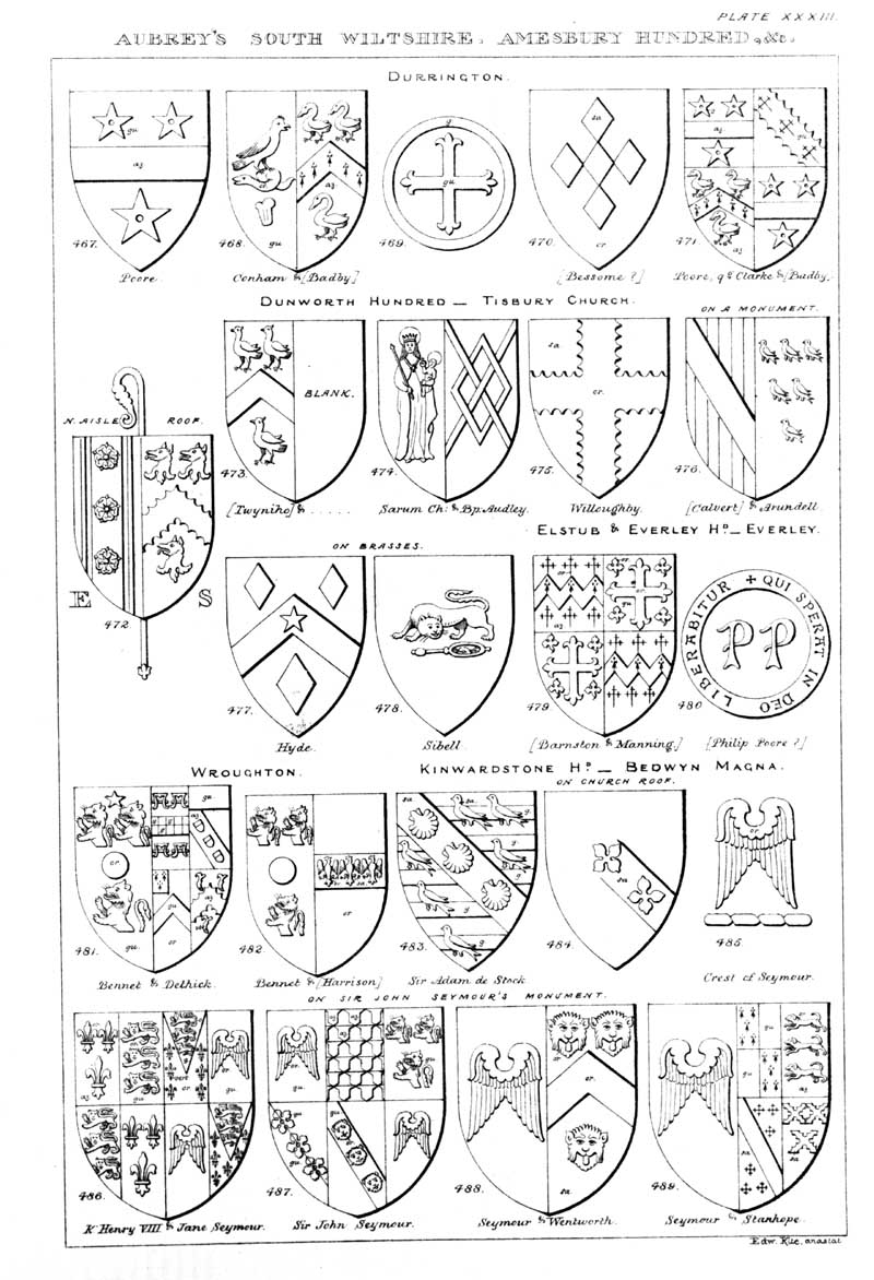 Page 31 Coats of arms in Durrington, Tisbury, Everleigh, Wroughton, and Great Bedwyn churches.