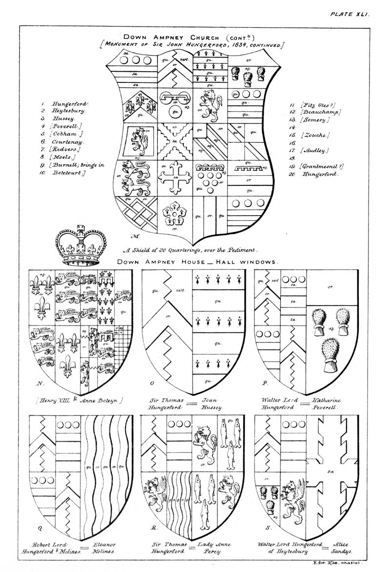 Page 39 Coats of arms in Down Ampney (Gloucestershire) church, and Down Ampney House (Hungerford family).