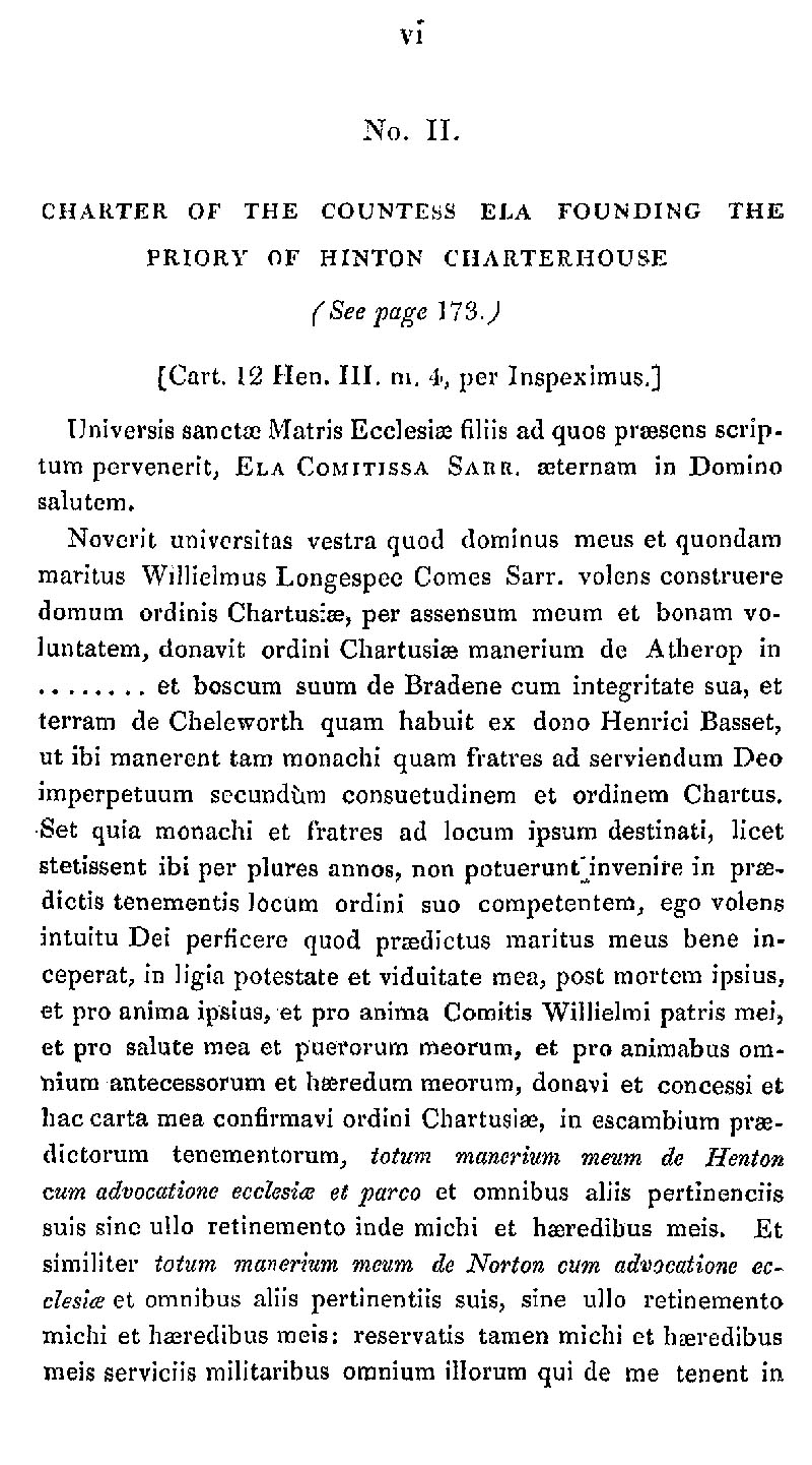 Page 6 Charter of Hinton Charterhouse Priory founded by Ela Countess of Salisbury.