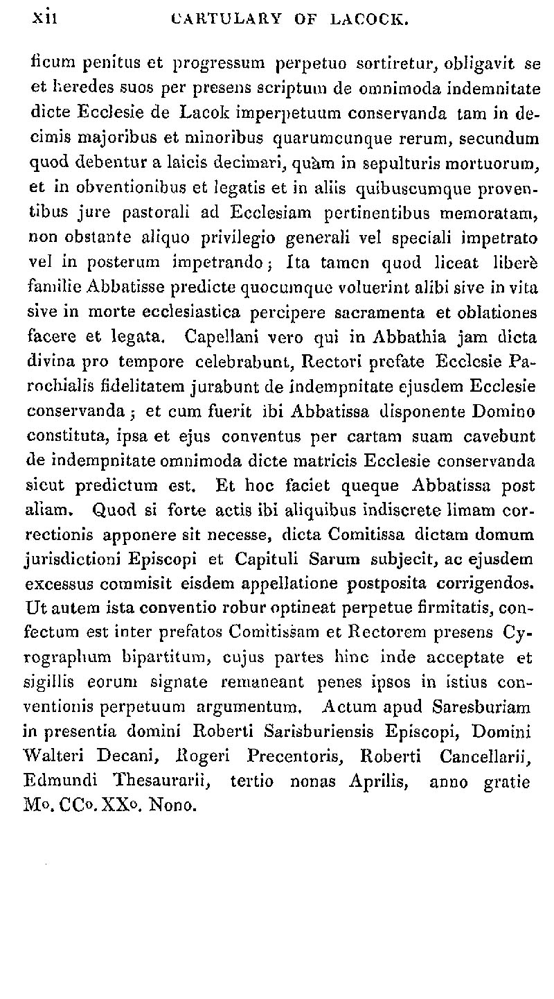 Page 12 Abstract from the Cartulary of Lacock Abbey.