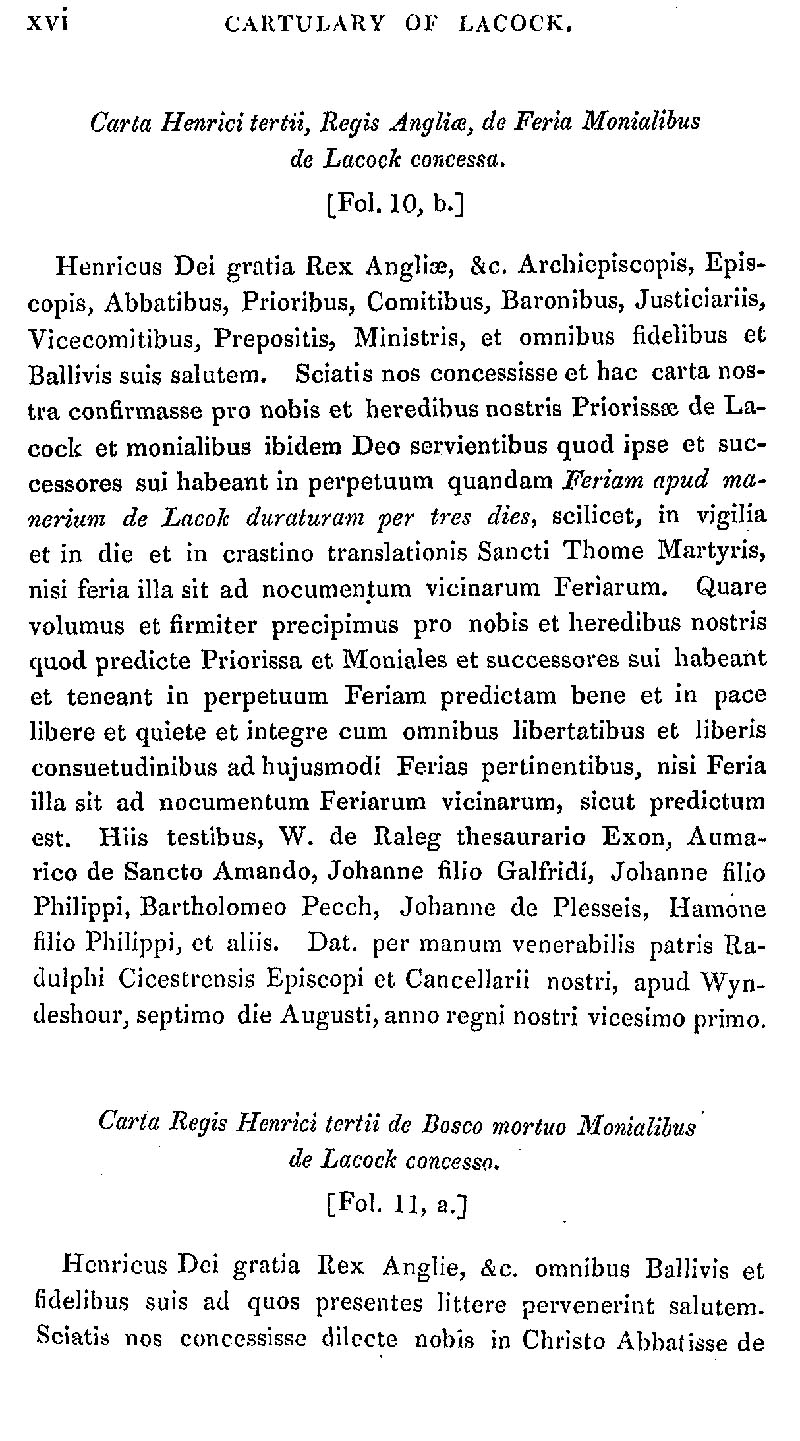 Page 16 Abstract from the Cartulary of Lacock Abbey.