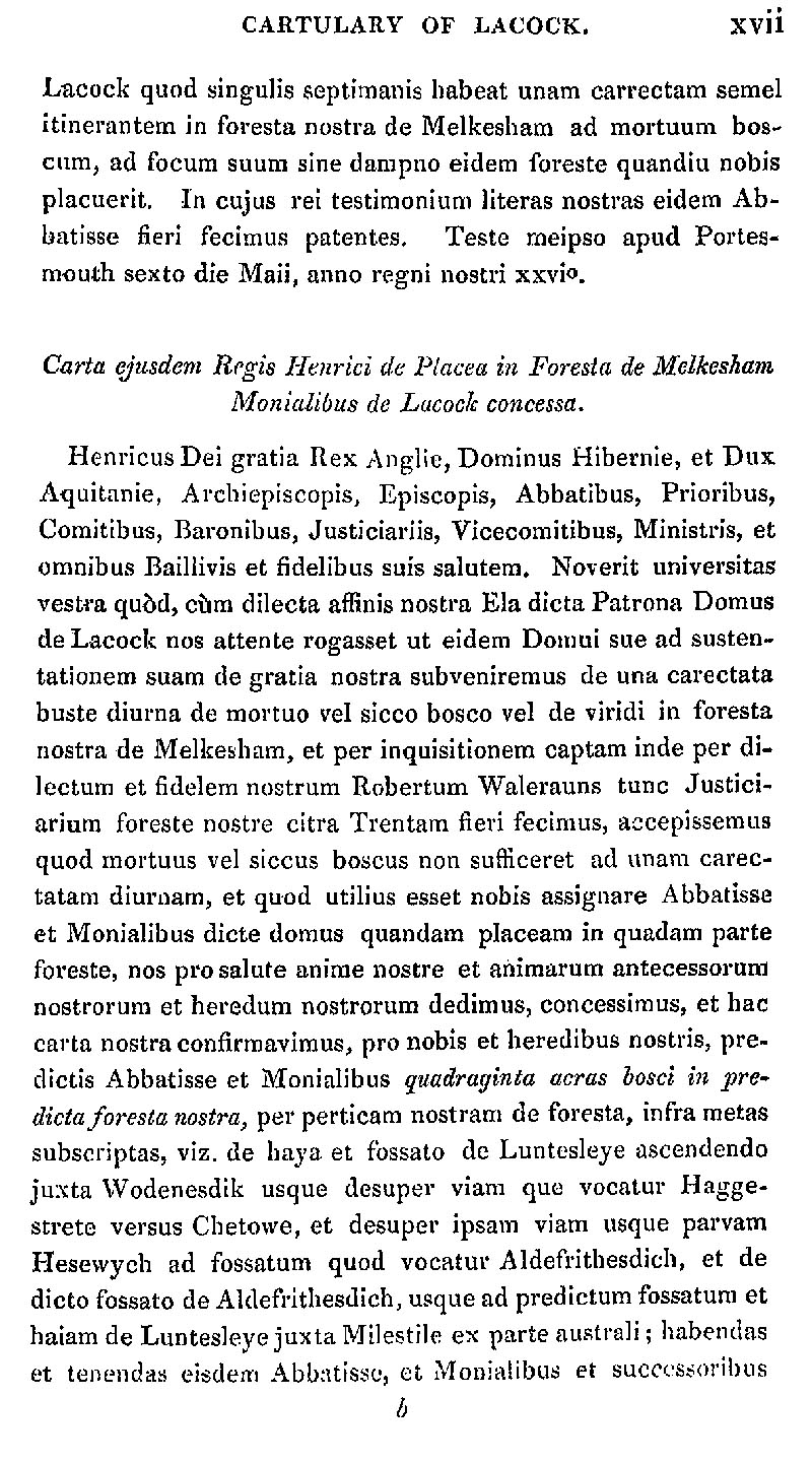 Page 17 Abstract from the Cartulary of Lacock Abbey.
