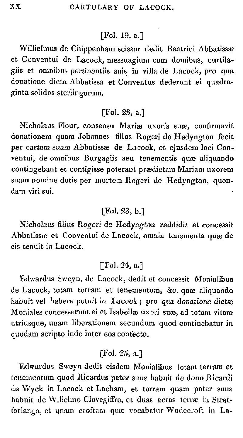 Page 20 Abstract from the Cartulary of Lacock Abbey.