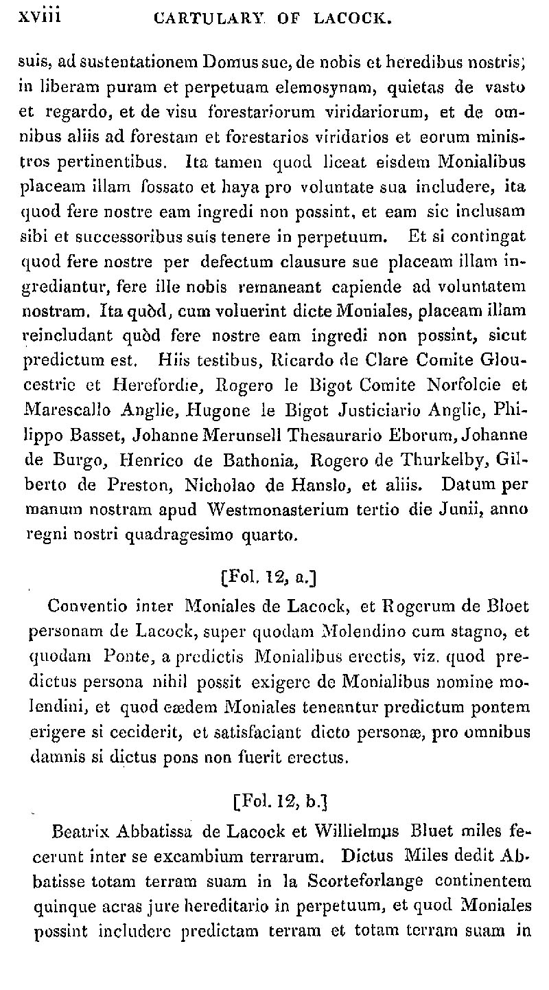 Page 18 Abstract from the Cartulary of Lacock Abbey.