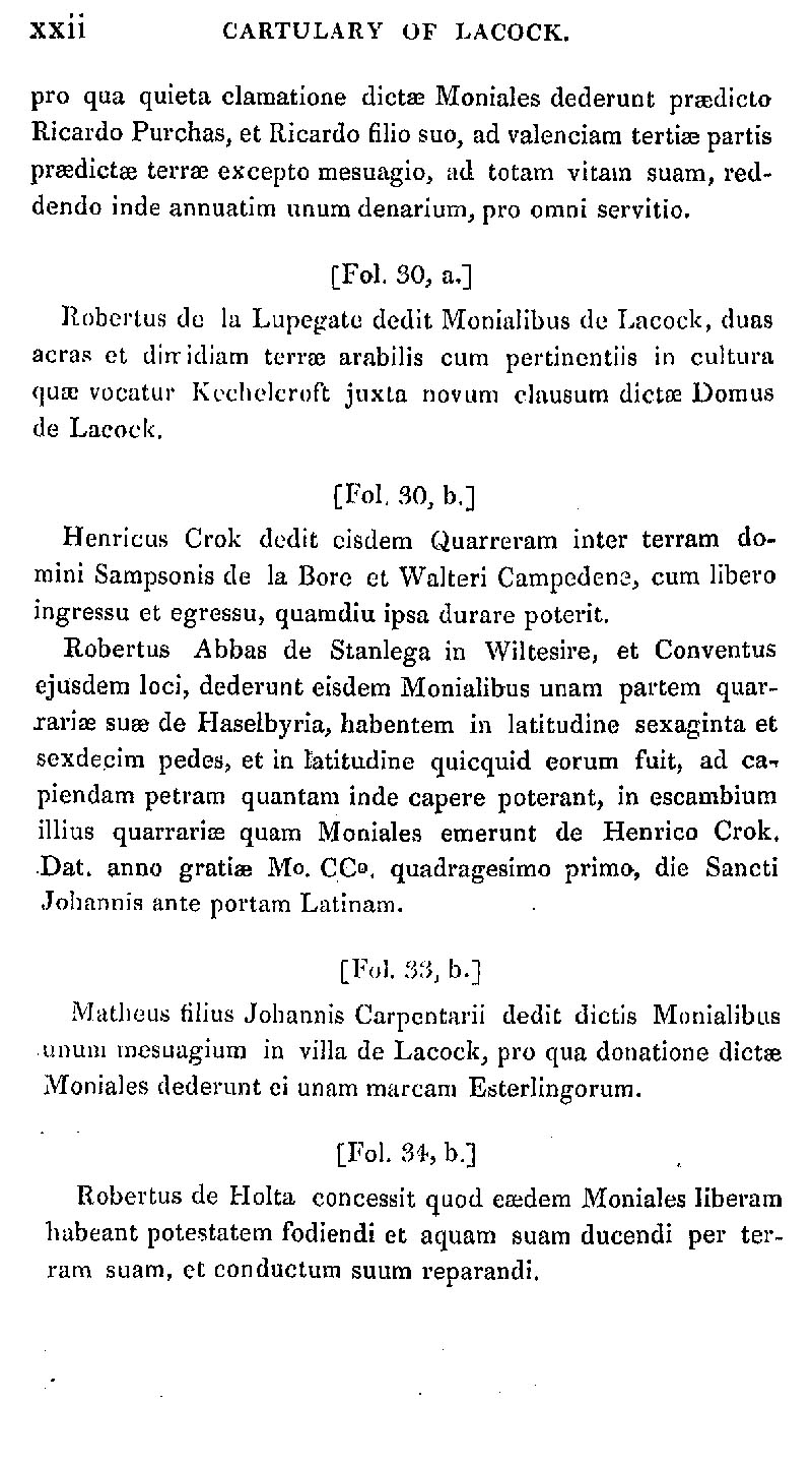 Page 22 Abstract from the Cartulary of Lacock Abbey.
