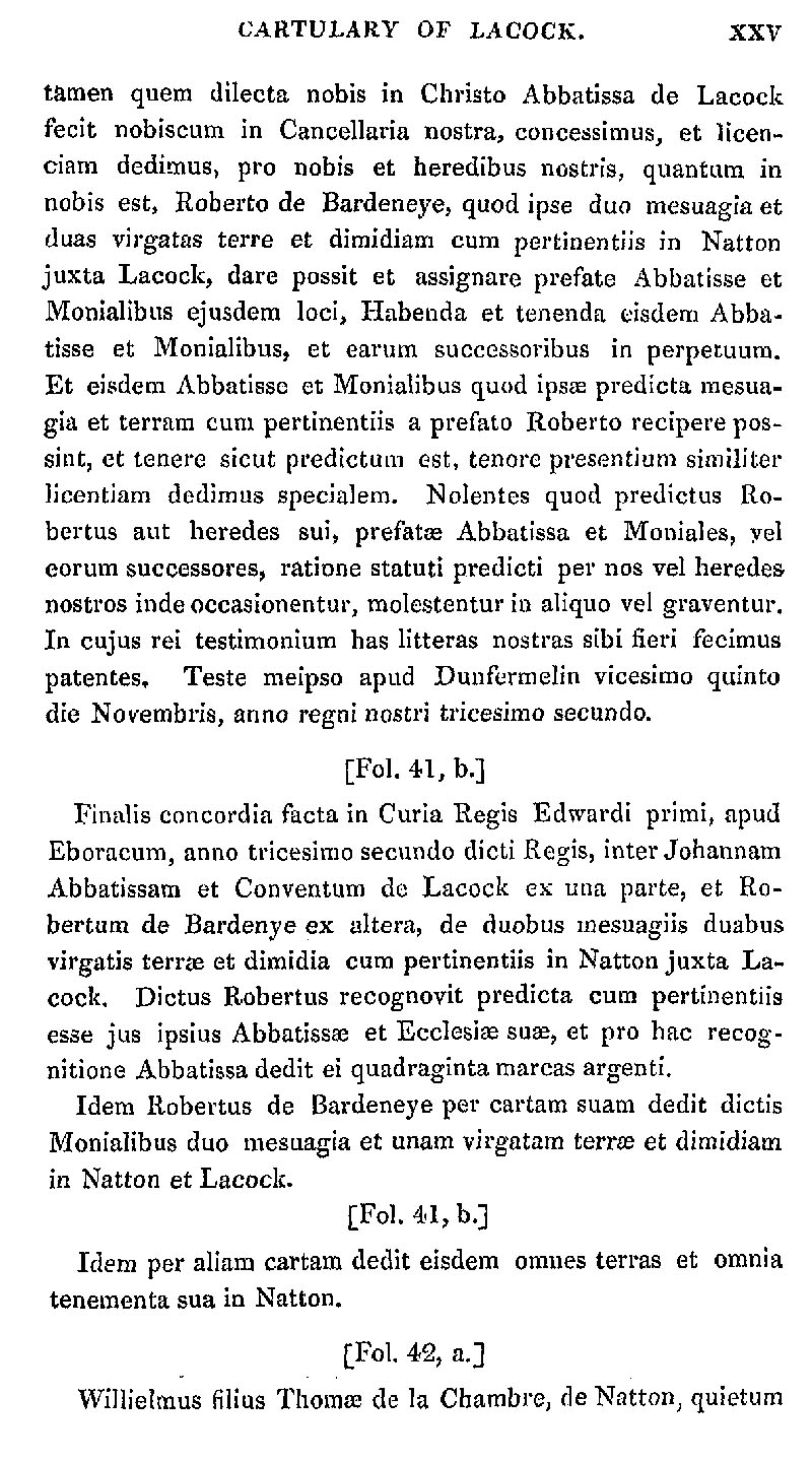 Page 25 Abstract from the Cartulary of Lacock Abbey.