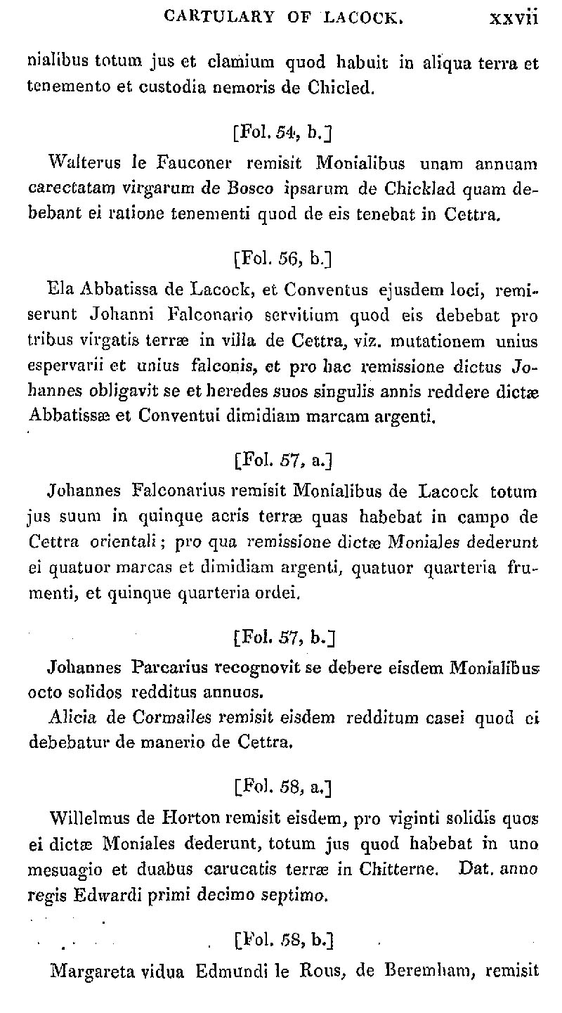 Page 27 Abstract from the Cartulary of Lacock Abbey.
