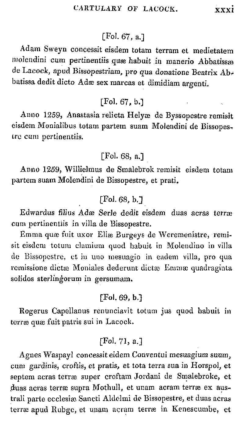 Page 31 Abstract from the Cartulary of Lacock Abbey.