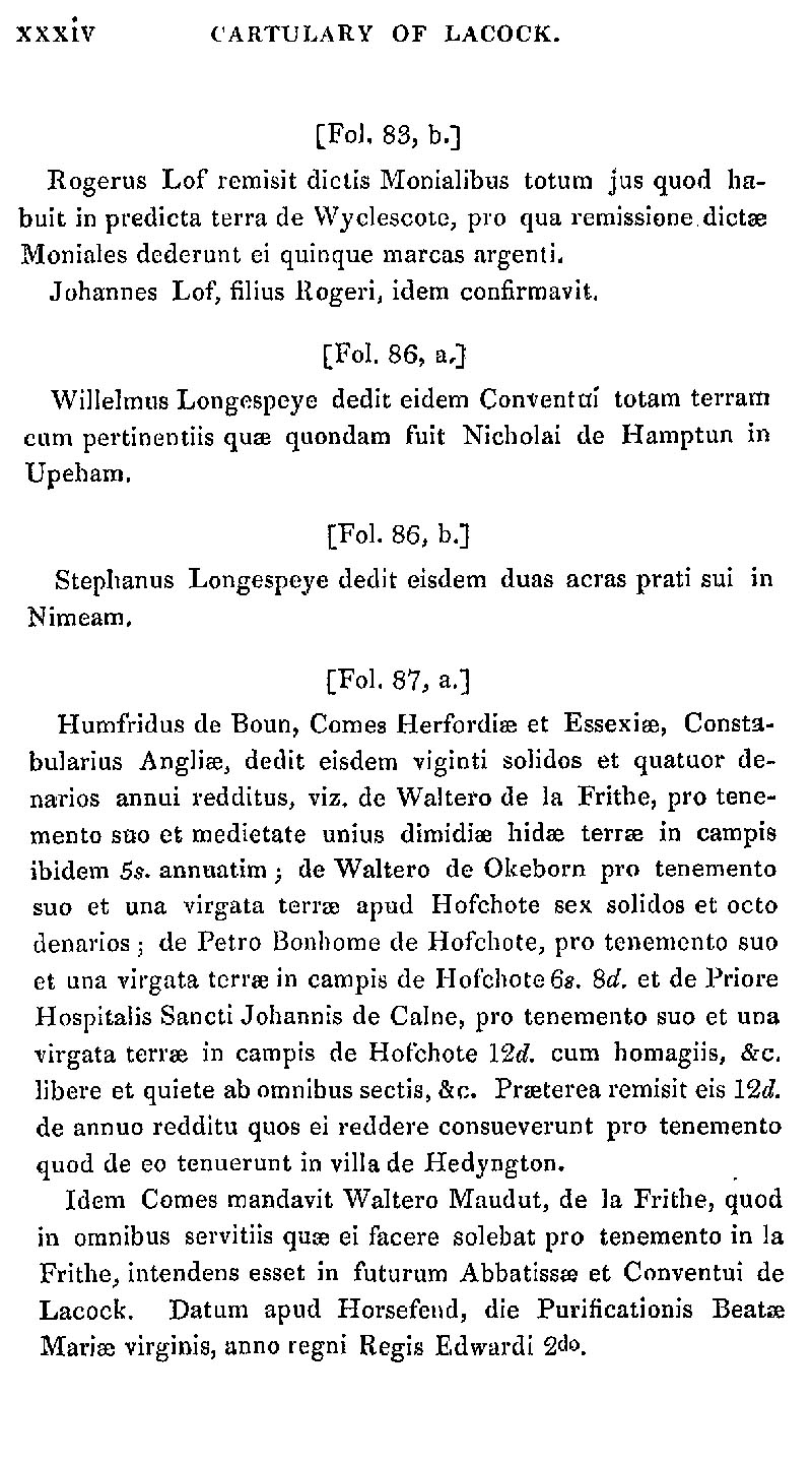 Page 34 Abstract from the Cartulary of Lacock Abbey.