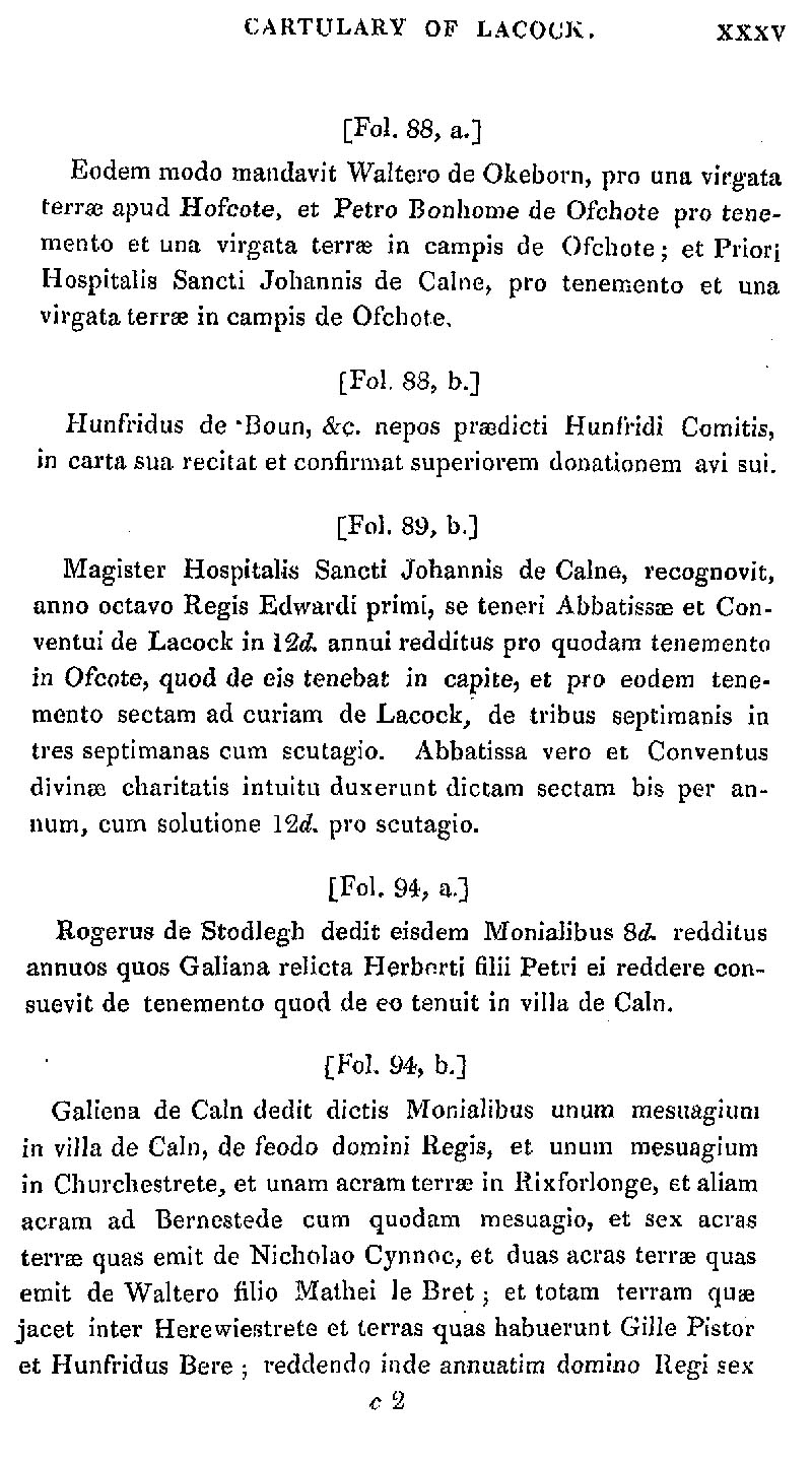 Page 35 Abstract from the Cartulary of Lacock Abbey.