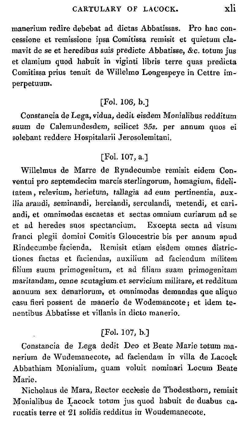 Page 41 Abstract from the Cartulary of Lacock Abbey.
