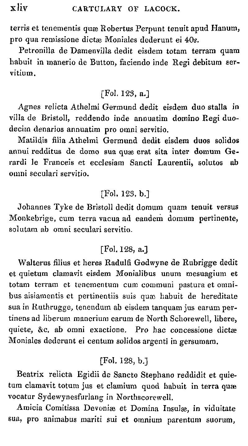 Page 44 Abstract from the Cartulary of Lacock Abbey.