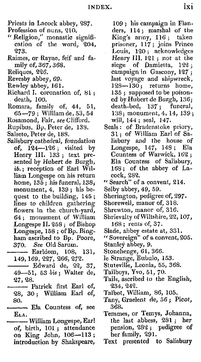 Page 61 Index to Lacock Abbey.