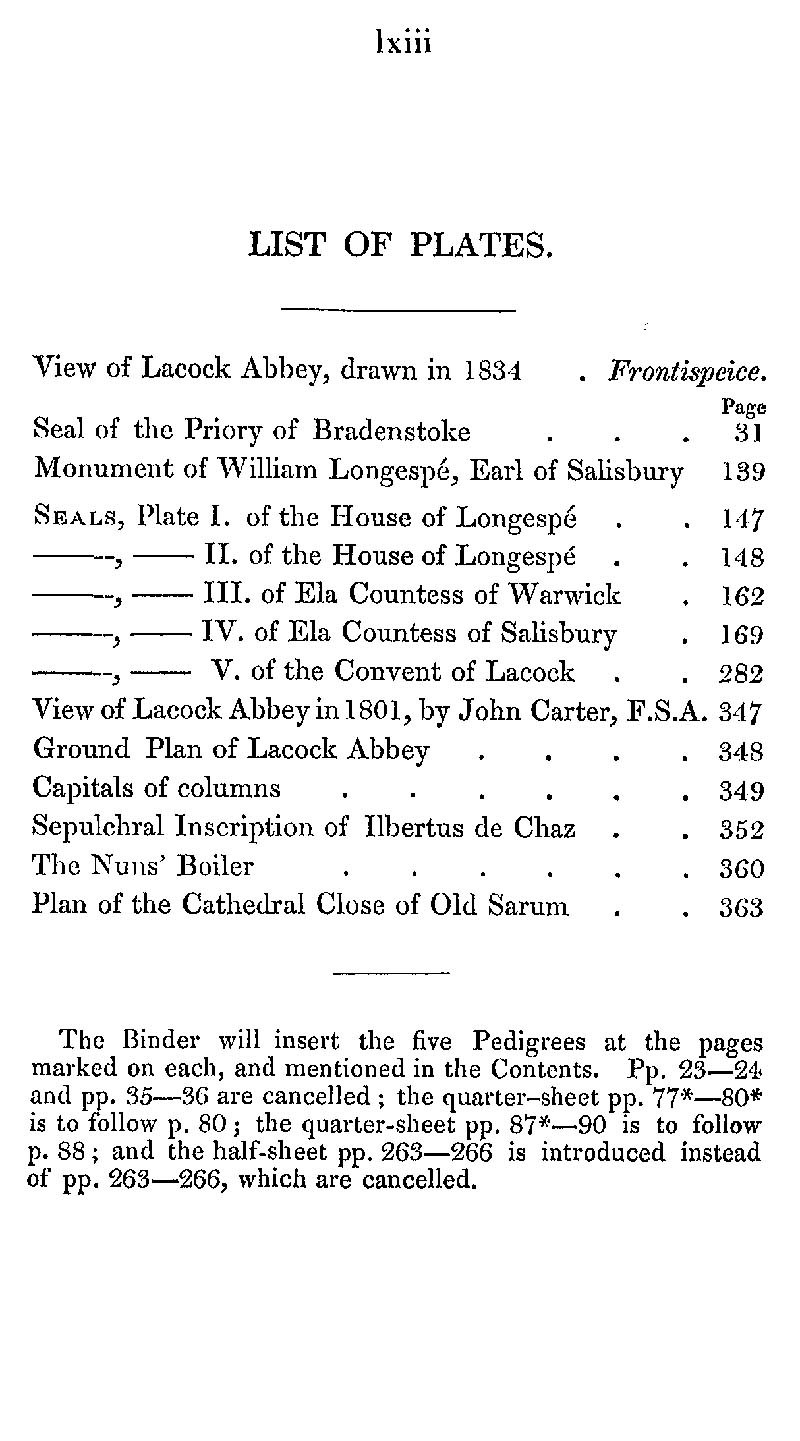 Page 63 List of plates in Lacock Abbey.