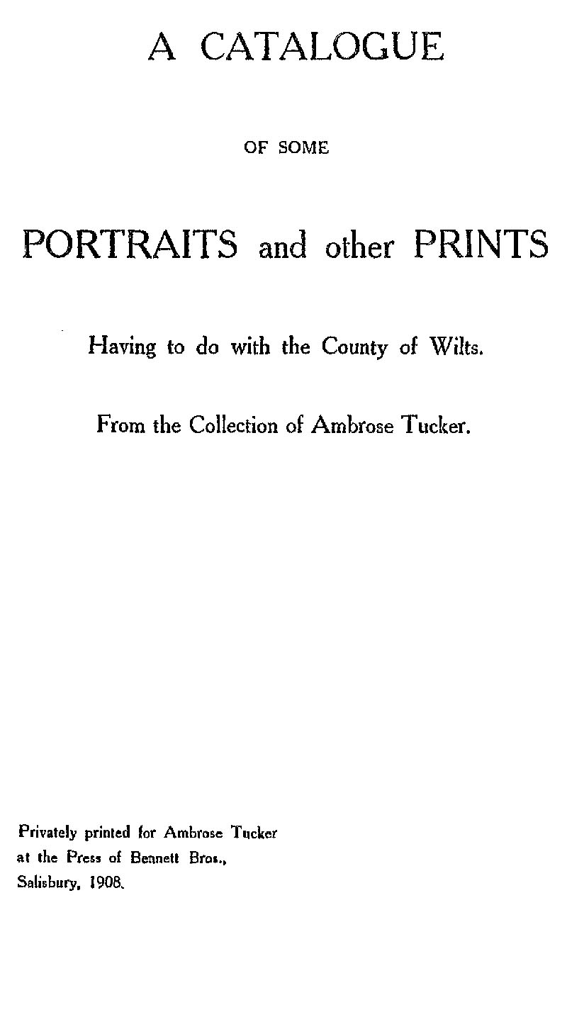 Book 9 A catalogue of some portraits and other prints, having to do with the County of Wiltshire, by Ambrose Tucker, 1908