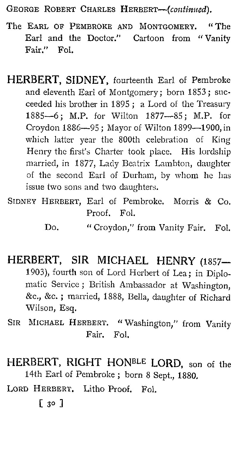 Page 22 George Robert Charles Herbert (1850-1895); Sir Michael Henry Herbert (1857-1903); Lord Herbert (b.1880).