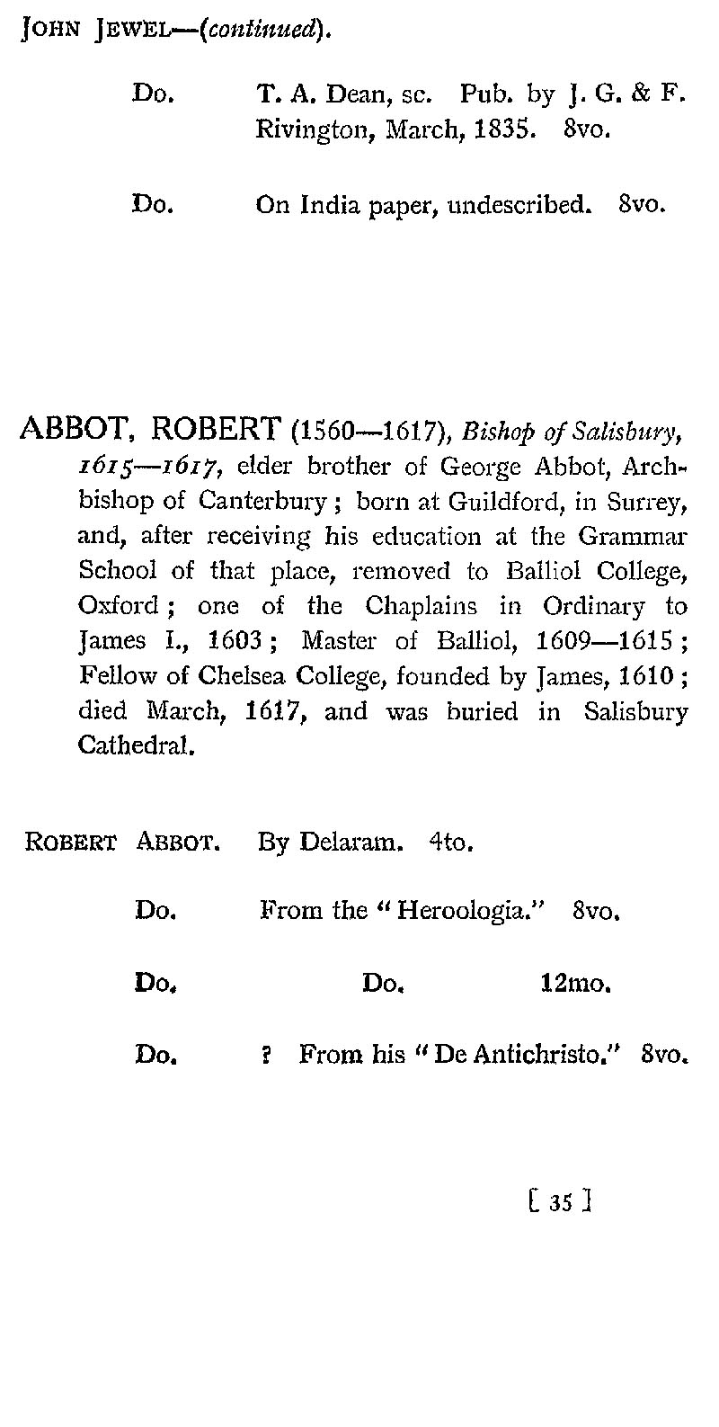 Page 27 Bishop of Salisbury: John Jewel; Robert Abbot.