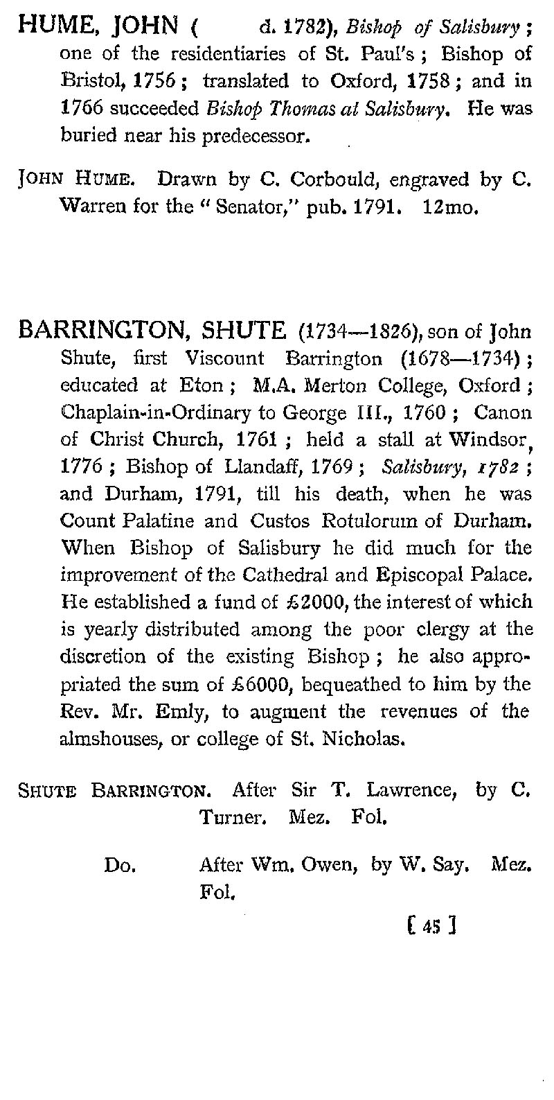 Page 37 Bishop of Salisbury: John Hume; Shute Barrington.