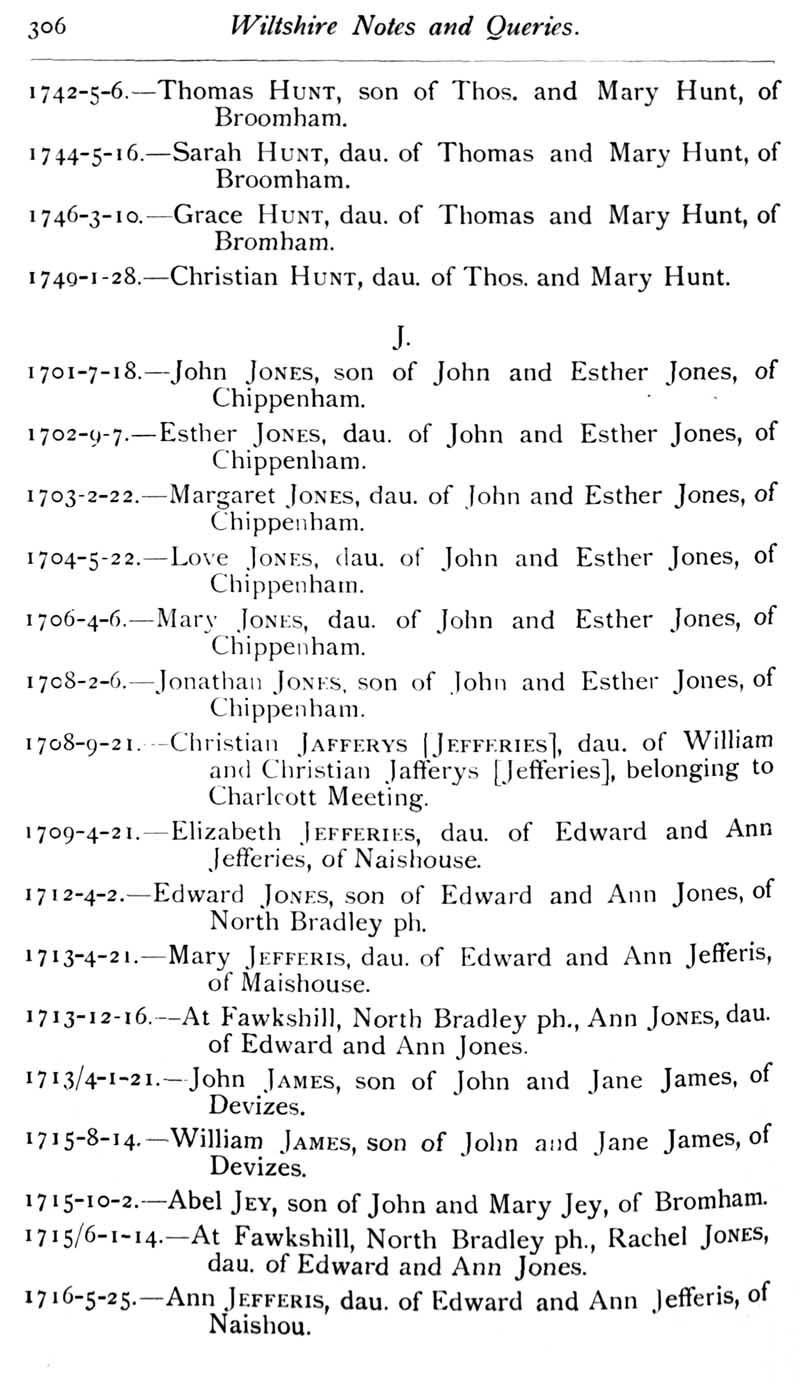 Chapter 8 Isaac Walton, Records of Wiltshire Parishes; Quakerism in Wiltshire; Feet of Fines for Wiltshire; Thomas Bundy's Will; Window and Light 1774-1775; Dugdale of Seend; Queries; Replies; Cartularies of Wiltshire Abbeys etc; Wiltshire Briefs; Notes on Books