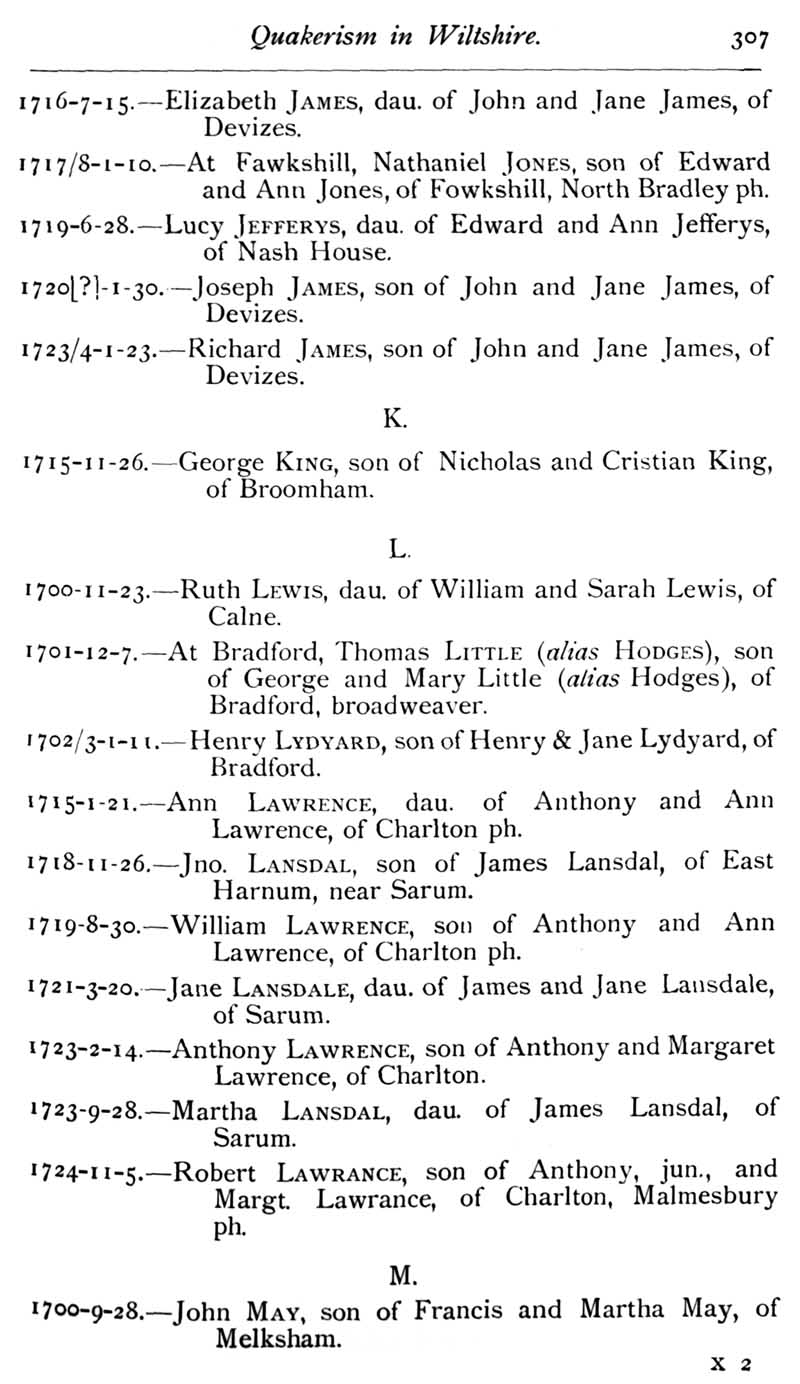 Chapter 8 Isaac Walton, Records of Wiltshire Parishes; Quakerism in Wiltshire; Feet of Fines for Wiltshire; Thomas Bundy's Will; Window and Light 1774-1775; Dugdale of Seend; Queries; Replies; Cartularies of Wiltshire Abbeys etc; Wiltshire Briefs; Notes on Books