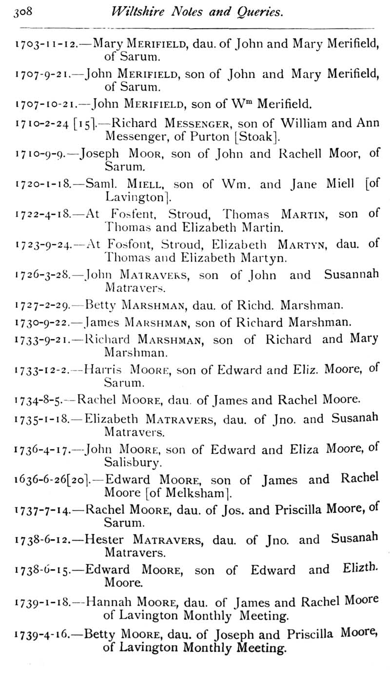 Chapter 8 Isaac Walton, Records of Wiltshire Parishes; Quakerism in Wiltshire; Feet of Fines for Wiltshire; Thomas Bundy's Will; Window and Light 1774-1775; Dugdale of Seend; Queries; Replies; Cartularies of Wiltshire Abbeys etc; Wiltshire Briefs; Notes on Books