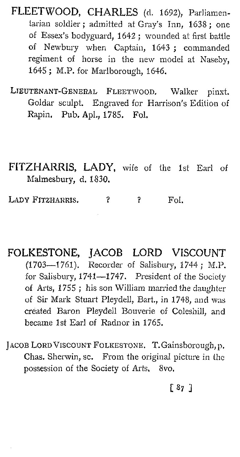 Page 35 Charles Fleetwood; Lady Fitzharris; Jacob Lord Viscount Folkstone.