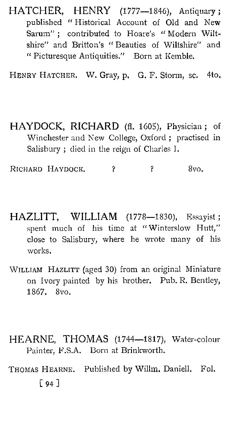 Page 42 Henry Hatcher; Richard Haydoch; William Hazlitt; Thomas Hearne.