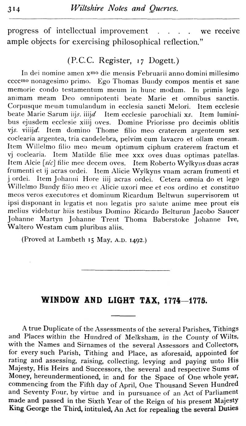 Chapter 8 Isaac Walton, Records of Wiltshire Parishes; Quakerism in Wiltshire; Feet of Fines for Wiltshire; Thomas Bundy's Will; Window and Light 1774-1775; Dugdale of Seend; Queries; Replies; Cartularies of Wiltshire Abbeys etc; Wiltshire Briefs; Notes on Books