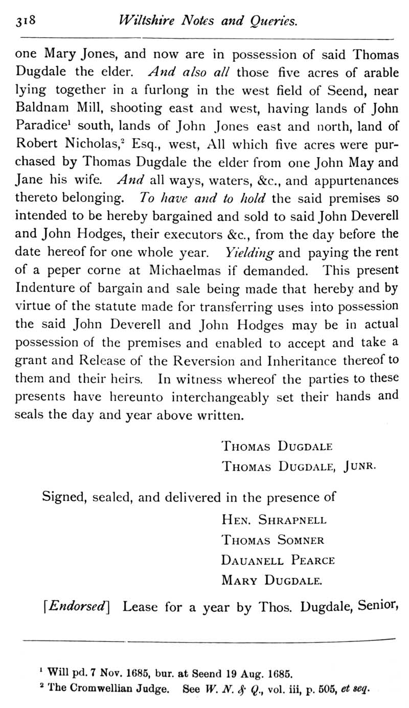 Chapter 8 Isaac Walton, Records of Wiltshire Parishes; Quakerism in Wiltshire; Feet of Fines for Wiltshire; Thomas Bundy's Will; Window and Light 1774-1775; Dugdale of Seend; Queries; Replies; Cartularies of Wiltshire Abbeys etc; Wiltshire Briefs; Notes on Books