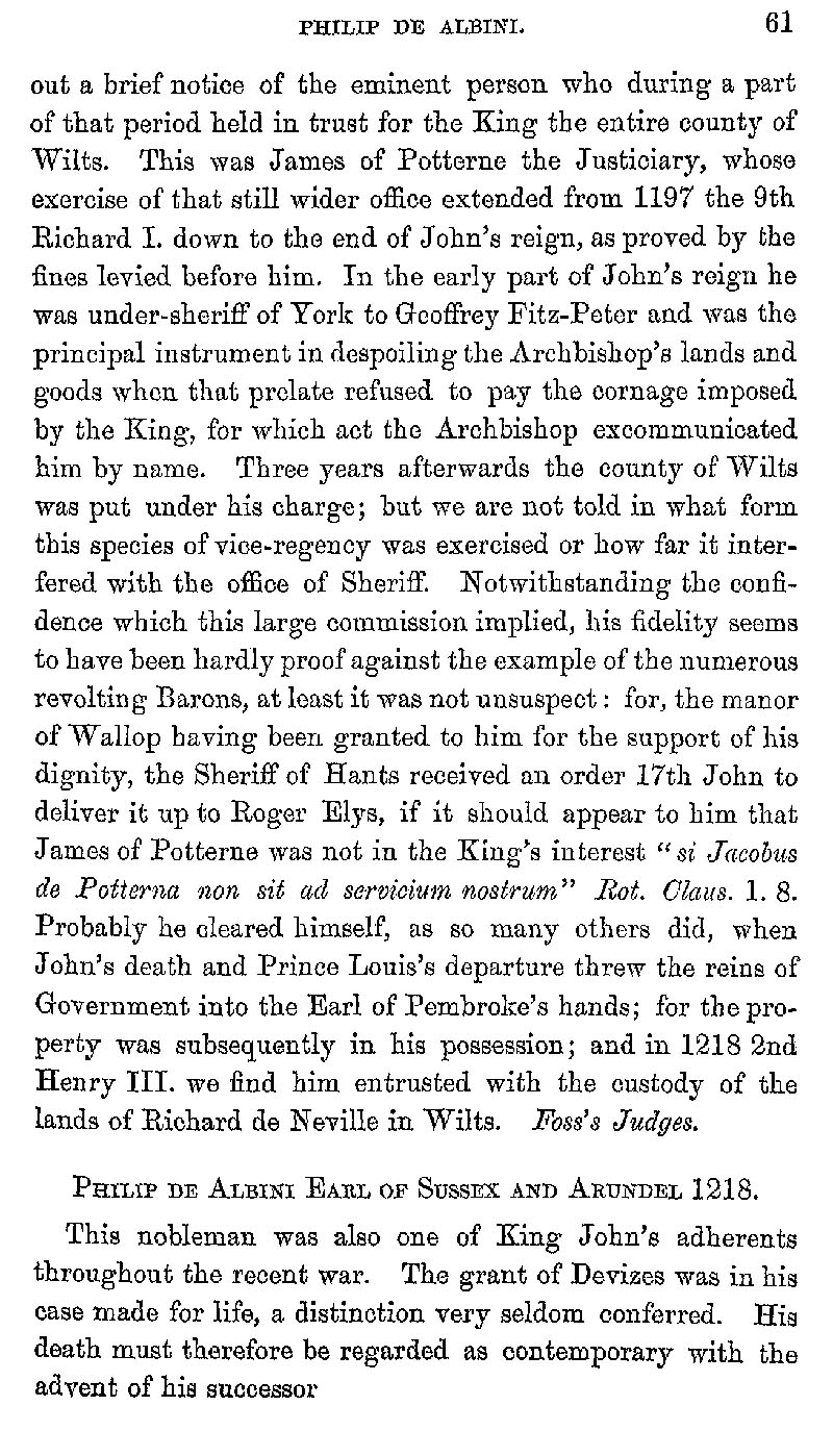 Page 63 John Mareschall, 1216; Philip De Albini of Sussex and Arundel, 1218