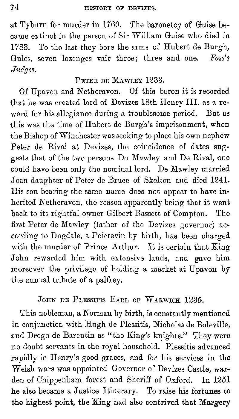 Page 77 Peter De Mawley, 1233; John De Plessitis, Earl of Warwick, 1235