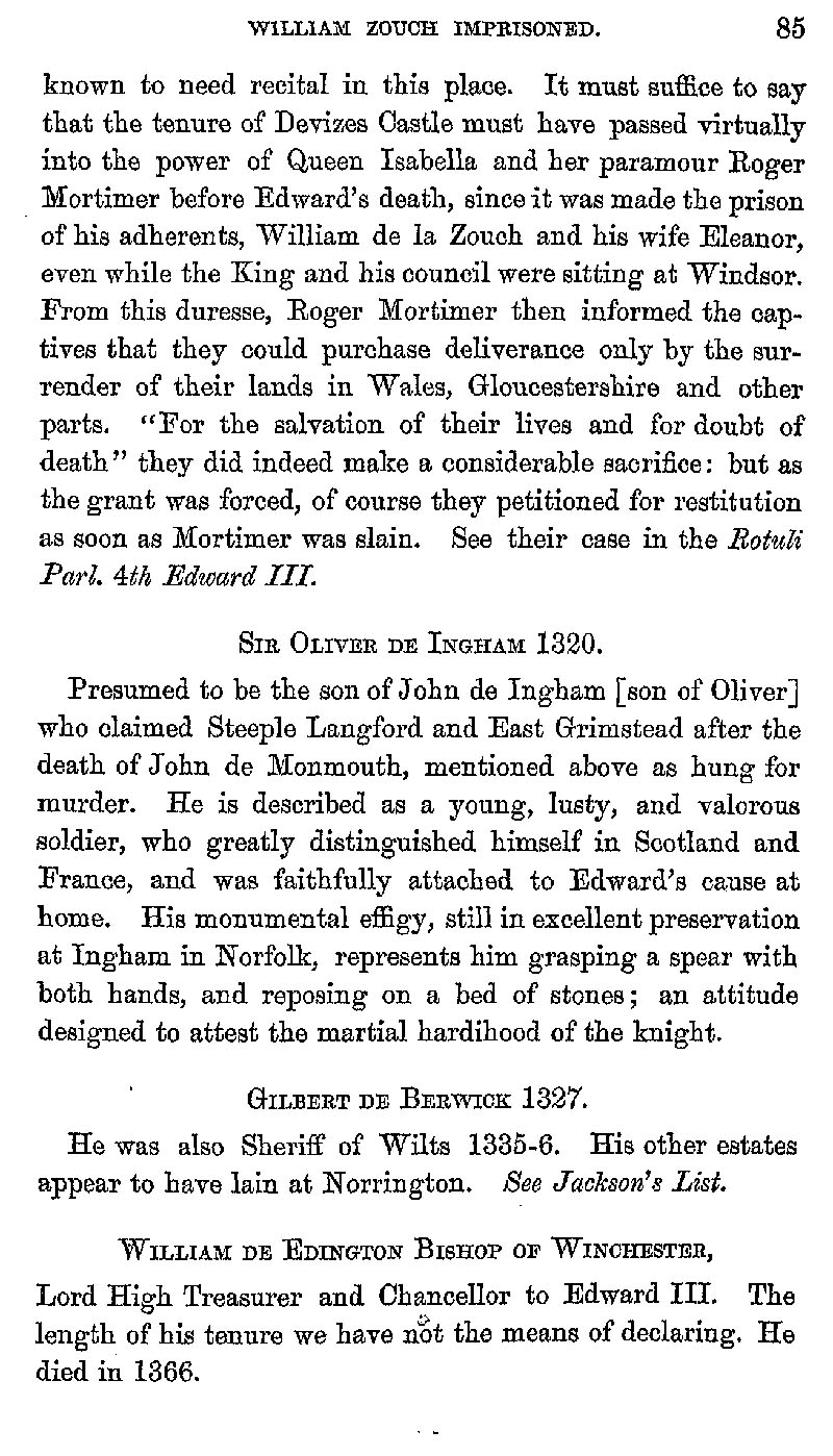 Page 88 Sir Oliver De Ingham, 1320; Gilbert De Berwick, 1327
