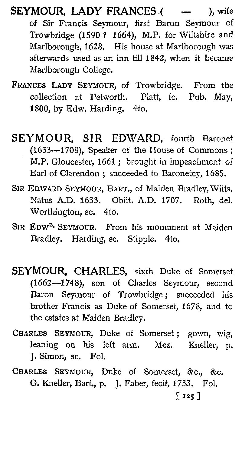 Page 73 Lady Frances Seymour; Sir Edward Seymour; Charles Seymour.