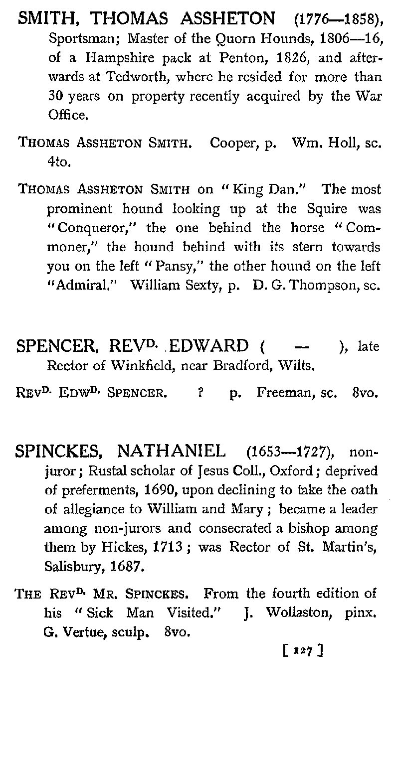 Page 75 Thomas Assheton Smith; Rev. Edward Spencer; Nathaniel Spinckes.